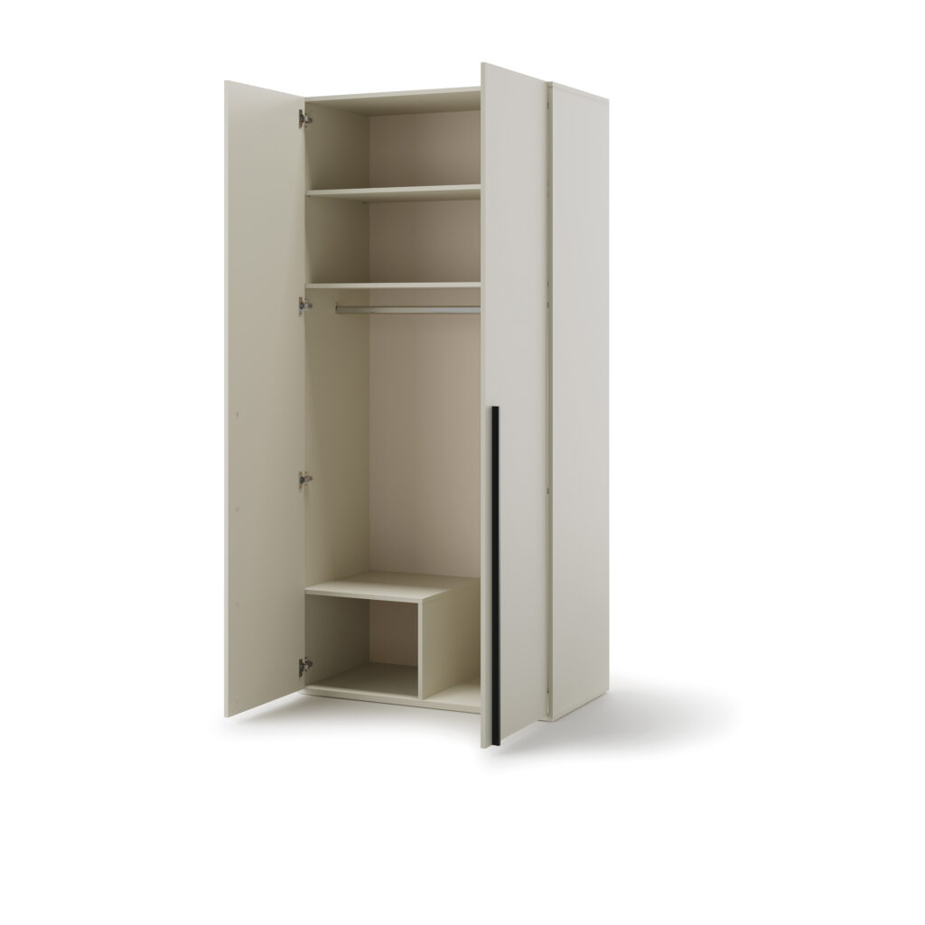 L’armoire 2 portes MANON est fabriquée en Europe, garantissant des normes strictes de qualité et de sécurité. Sa structure repose sur des panneaux de bois d’ingénierie de 16 à 22 mm, offrant une solidité adaptée à un usage quotidien intensif. Les chants ABS résistants renforcent toutes les arêtes, limitant l’usure et protégeant le meuble des chocs ou frottements.