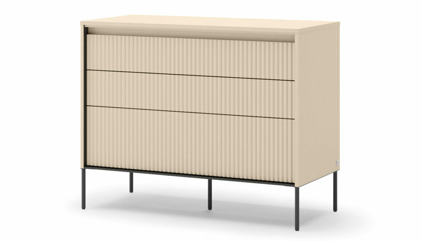 Fabriquée en Europe, la commode trois tiroirs beige STELLA se distingue par une conception robuste et soignée, pensée pour durer dans le temps. Sa structure est réalisée en panneaux de bois d’ingénierie de 16 mm, tandis que ses façades rainurées sont fabriquées en MDF de 18 mm, un matériau dense et résistant. Cette combinaison assure une stabilité optimale et une grande résistance aux usages quotidiens.
