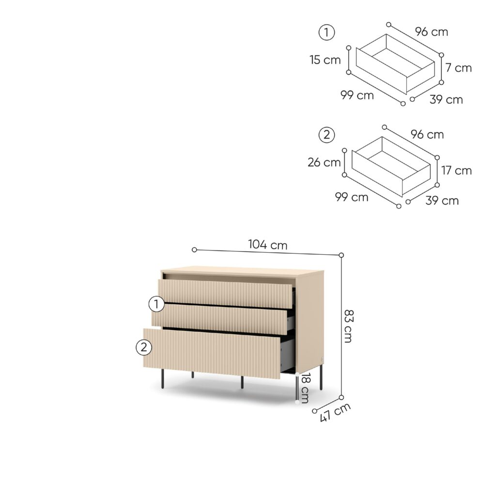 - Commode 3 tiroirs Beige: 3 tiroirs spacieux