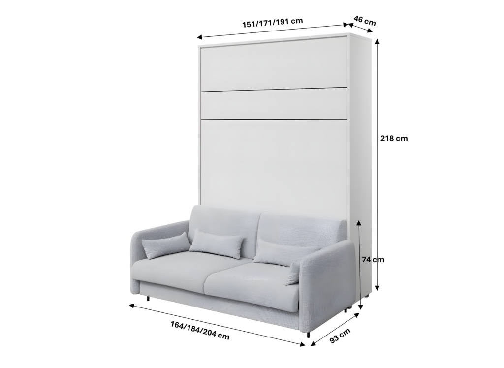 Le lit escamotable canapé intégré gris claire SMART est conçu pour maximiser l’espace de vie dans les petites pièces. Le lit se déplie au-dessus du canapé, il suffit simplement d’enlever les deux coussins du dossier et ouvrir le lit en position nuit. Ainsi nous obtenons un espace confortable pour dormir sans avoir à déplacer le canapé. Cela permet d’utiliser le lit quotidiennement ( le confort du lit est identique à un lit traditionnel, le lit est doté d’un sommier à latte). Ce lit escamotable est un meuble gain de place , son mécanisme pneumatique assure une ouverture et une fermeture sécurisées et sans effort. Grâce aux sangles de maintien, les draps et oreillers restent en place lors de la fermeture, simplifiant son utilisation au quotidien, sans nécessité de faire le lit à chaque fois. Ce meuble gain de place avec canapé et lit escamotable intégré est idéal pour aménager un studio ou maximiser un petit espace.