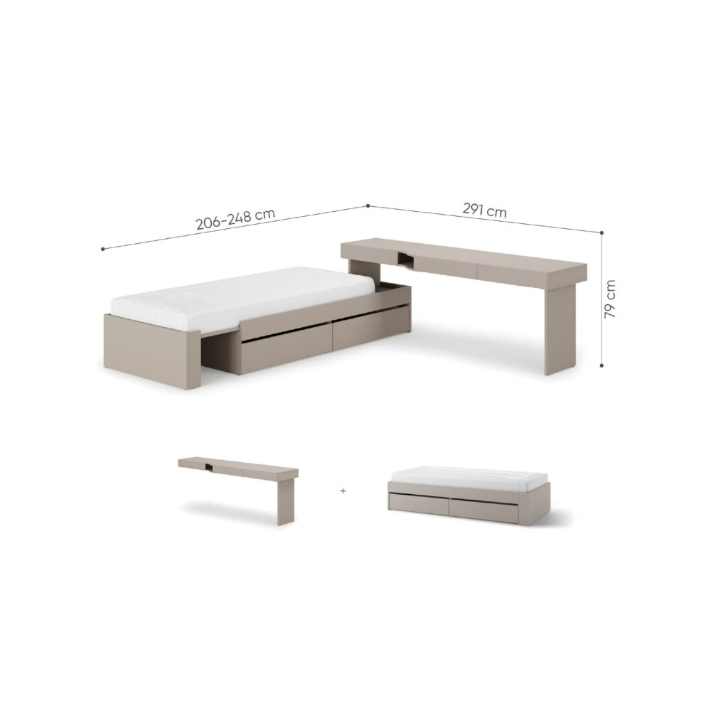 La collection MANON associe style contemporain et praticité. Avec ses lignes droites et sa finition élégante en gris taupe, ce lit bureau s’intègre harmonieusement dans une chambre d’ado moderne. Son design minimaliste lui permet de convenir aussi bien à une décoration scandinave qu’à une ambiance urbaine et actuelle. La combinaison d’un lit, d’un bureau et de rangements intégrés remplace plusieurs meubles, libère de l’espace et garantit une chambre organisée. Ce lit ado gain de place devient ainsi la pièce maîtresse d’un aménagement fonctionnel et esthétique.