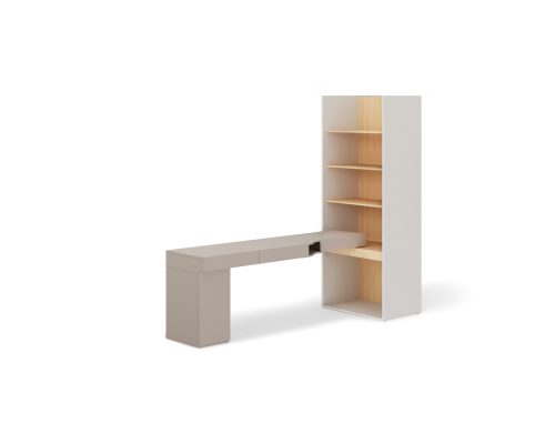 - Bibliothèque en bois moderne avec ouverture à droite : Idéale pour mettre en valeur vos objets déco.