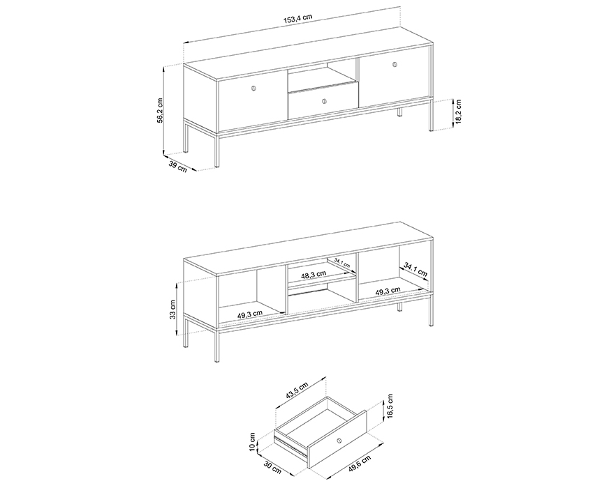 - Rangements spacieux : Offre un espace de rangement généreux avec 1 tiroir, 2 portes, 3 étagères et une niche centrale.